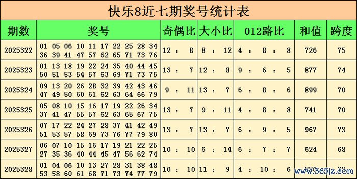 福彩自得8上期开奖号码:01 04 06 10 13 27 28 31 38 48 53 58 60 61 68 71 73 74 77 79,其中奖号奇偶比为10:10,大小比为11:9,跨度为78。